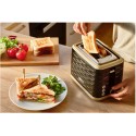Timer elektroniczny umożliwia korzystanie z 7 stopni ustawień intensywności opiekania. Po zakończeniu funkcji pieczywo jest automatyczne wysuwane a urządzenie wyłączane. Toster posiada funkcję automatycznego wyśrodkowania umożliwiającą równomierne opiekanie grubych i cienkich tostów. Łatwy w czyszczeniu (wysuwana tacka na okruchy).