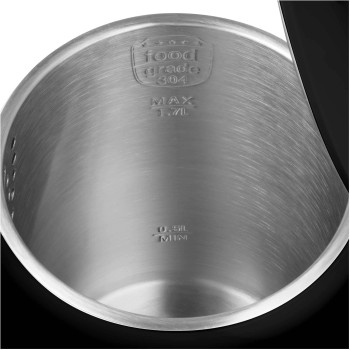 Nowoczesny, innowacyjny i elegancki czajnik elektryczny o pojemności 1,7 litra z podwójnymi ściankami (warstwa wewnętrzna stal nierdzewna, obudowa zewnętrzna tworzywo sztuczne). Czajnik posiada ustawienie temperatury i wyświetlacz LED z programami do wyboru.