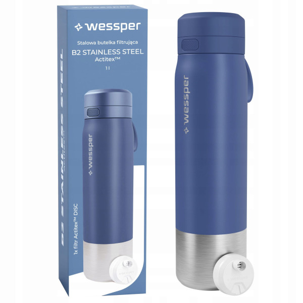 Filtracja Actitex™ DISC – technologia, która poprawia smak wody i redukuje zanieczyszczeniaButelka Wessper B2 STAINLESS STEEL wyposażona jest w nowoczesny filtr Actitex™ DISC, oparty na mikroporowatej włókninie węglowej — rozwiązaniu objętym patentem. Dzięki temu filtr jest wyjątkowo gęsty i skuteczny, a przy tym kompaktowy. Jak działa filtr?