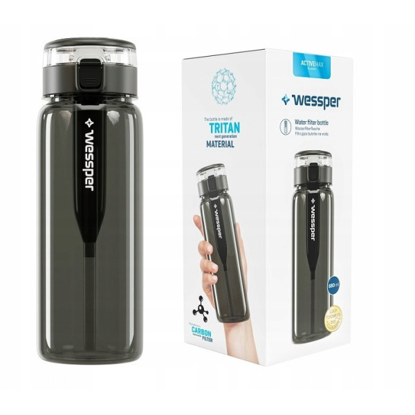 ActiveMax Clarti to butelka filtrująca wykonana z Tritanu – tworzywa bez szkodliwego BPA. Wyposażona jest w praktyczny filtr węglowy zamknięty w słomce, która ułatwia picie wody. Pomaga on pozbyć się z wody nadmiaru kamienia i chloru oraz sprawia, że lepiej smakuje. Dlaczego warto korzystać z butelki filtrującej Wessper?