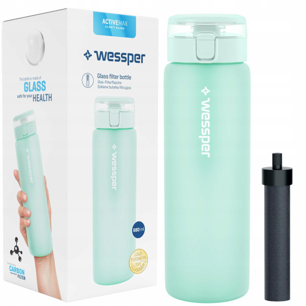 ActiveMax Clarti Glass to butelka filtrująca wykonana ze szkła borokrzemowego – odpornego na tzw. szoki termiczne i uszkodzenia mechaniczne. Wyposażona jest w praktyczny filtr węglowy zamknięty w słomce, która ułatwia picie wody. Pomaga on pozbyć się z wody nadmiaru kamienia i chloru oraz sprawia, że lepiej smakuje. Dlaczego warto korzystać z butelki filtrującej Wessper?
