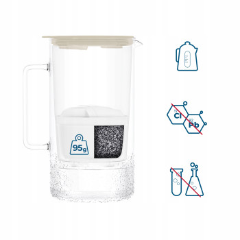 Szkło borokrzemowe gwarantuje nie tylko estetykę, ale również czysty smak wody, wolny od obcych zapachów i posmaków.