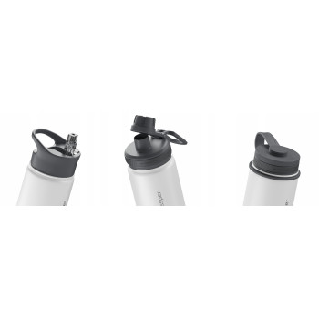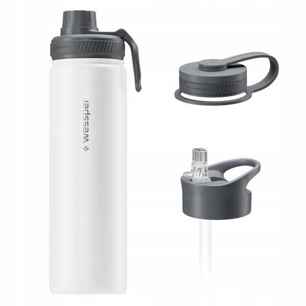Jedna butelka – różne sposoby użytkowania Butelka Wessper B3 THERMOSTEEL w zestawie posiada trzy wymienne, szczelne zakrętki, które pozwalają dopasować sposób picia do Twoich potrzeb: