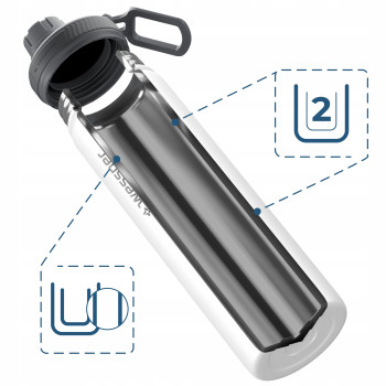 Izolacja termiczna do ciepłych i zimnych napojów Butelka Wessper B3 THERMOSTEEL posiada podwójne ścianki ze stali nierdzewnej oraz warstwę próżniową, które skutecznie utrzymują temperaturę napojów – gorących i zimnych – przez wiele godzin. Zewnętrzna powierzchnia butelki pozostaje sucha i bezpieczna w dotyku, zapewniając komfort użytkowania w każdej sytuacji.