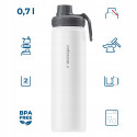 Butelka została wykonana z najlepszego rodzaju stali nierdzewnej 18/8 przeznaczonej do kontaktu z żywnością. Materiał nie wpływa na smak napojów i nie pochłania zapachów, a jednocześnie jest odporny na intensywne użytkowanie w każdych warunkach.