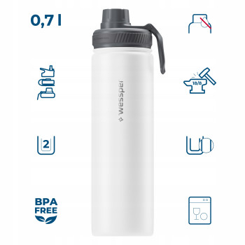 Butelka Wessper B3 THERMOSTEEL została wykonana z materiałów dopuszczonych do kontaktu z żywnością i nie zawiera BPA (bisfenolu A). Dzięki temu masz pewność, że codzienne korzystanie z butelki jest bezpieczne i zgodne z obowiązującymi normami.