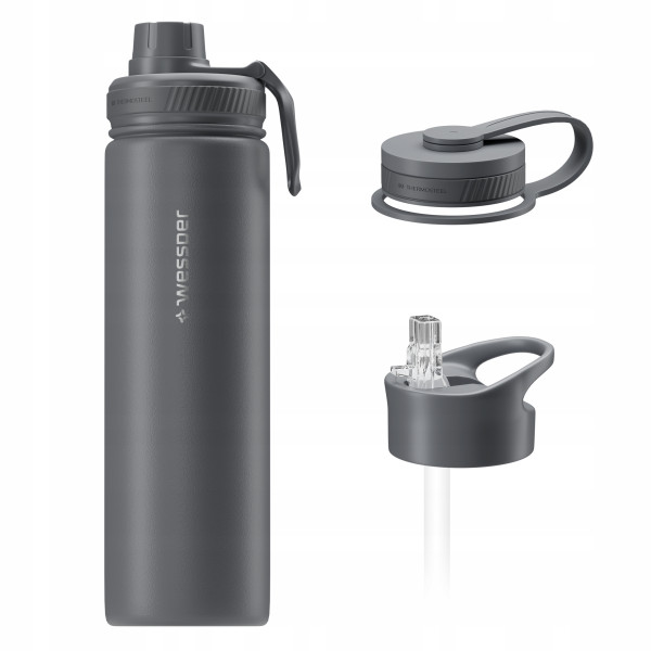 Butelka Wessper B3 THERMOSTEEL posiada w zestawie trzy wymienne, szczelne zakrętki: