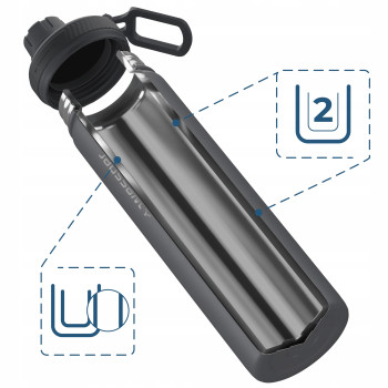 Izolacja termiczna do ciepłych i zimnych napojów Butelka została wykonana w technologii podwójnych ścianek ze stali nierdzewnej z warstwą próżniową, która skutecznie ogranicza utratę temperatury napojów. Dzięki temu napoje pozostają gorące lub zimne przez wiele godzin, a zewnętrzna powierzchnia butelki nie nagrzewa się, zapewniając komfort i bezpieczeństwo użytkowania.