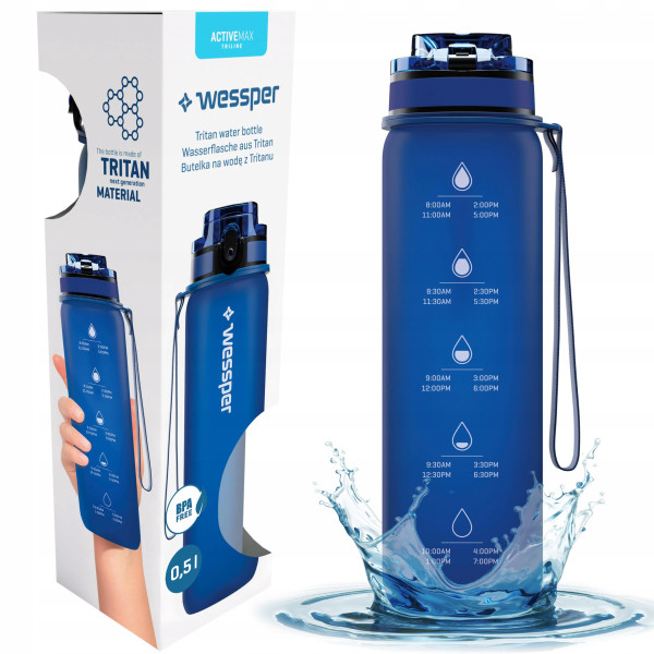 Wessper Activemax Triline 0,5 L – idealna towarzyszka treningu, pracy i codziennych aktywności. Motywuje do picia wody i sprawia, że nawodnienie staje się prostsze i przyjemniejsze!